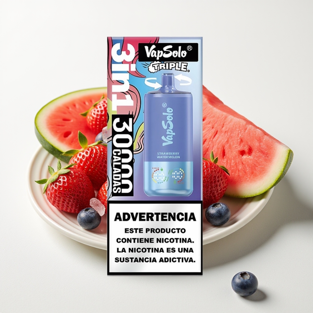 VapSolo Triple 30000 Puffs Fraise Pastèque & Myrtille Glacé – 40ml, Type-C, 20/50mg