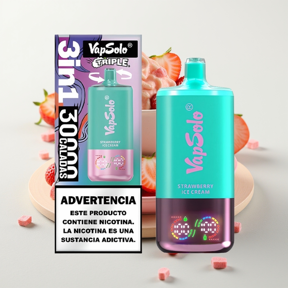 VapSolo Triple 30000 Puffs Glace à la Fraise – 40ml, 20/50mg, Type-C