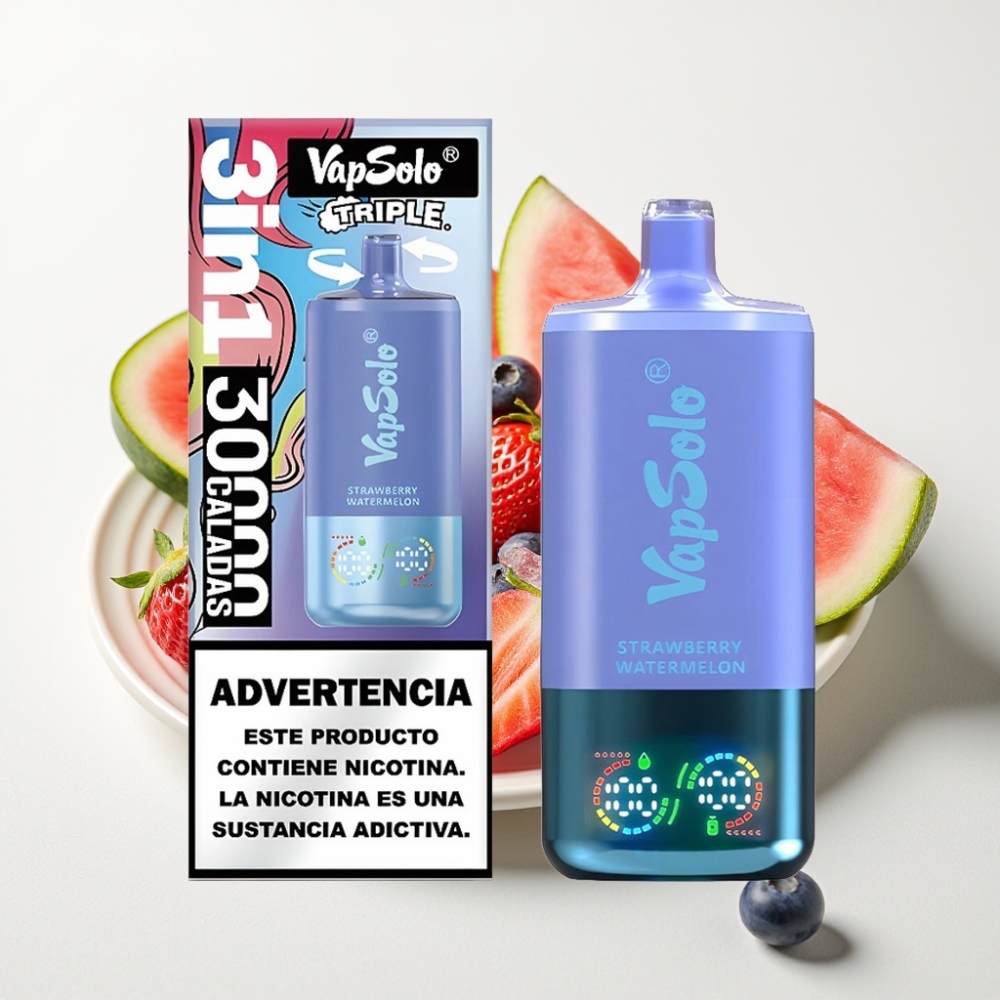VapSolo Triple 30000 Puffs Fraise Pastèque & Myrtille Glacé – 40ml, Type-C, 20/50mg