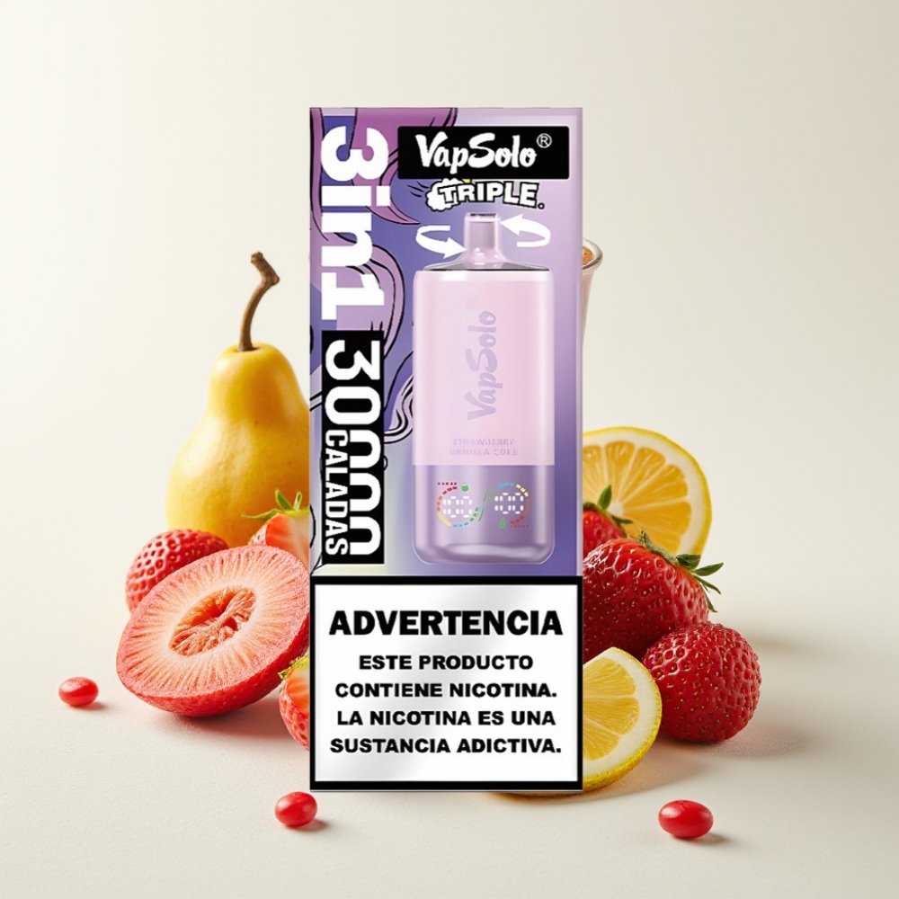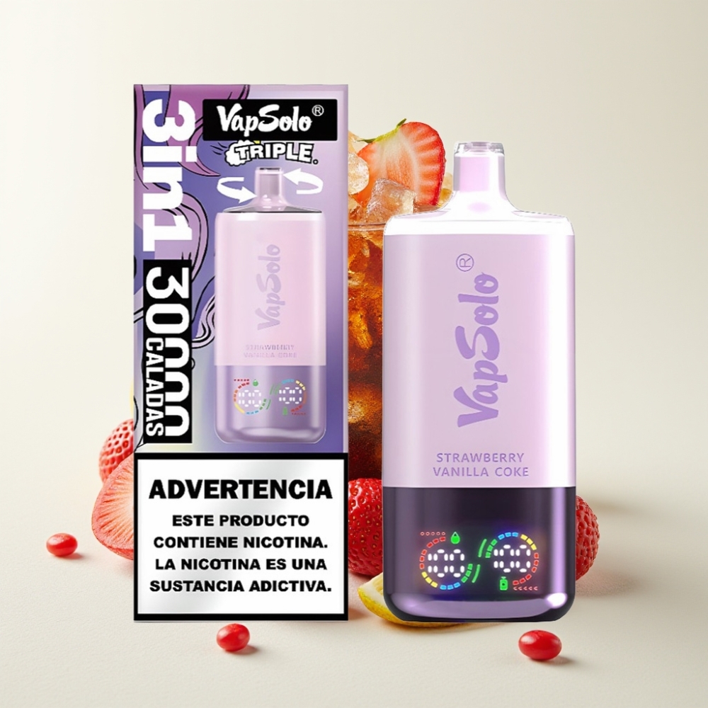 VapSolo Triple 30000 Puffs Fraise Vanille Coca, 40ml, 20/50mg/ml, Type-C