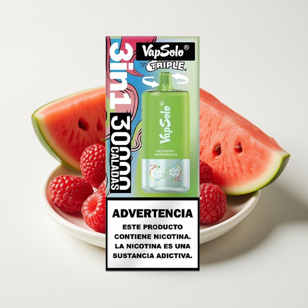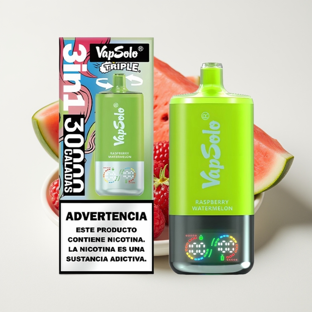 VapSolo Triple 30000 Puffs Framboise Pastèque – 40ml, 3 réservoirs, Type-C