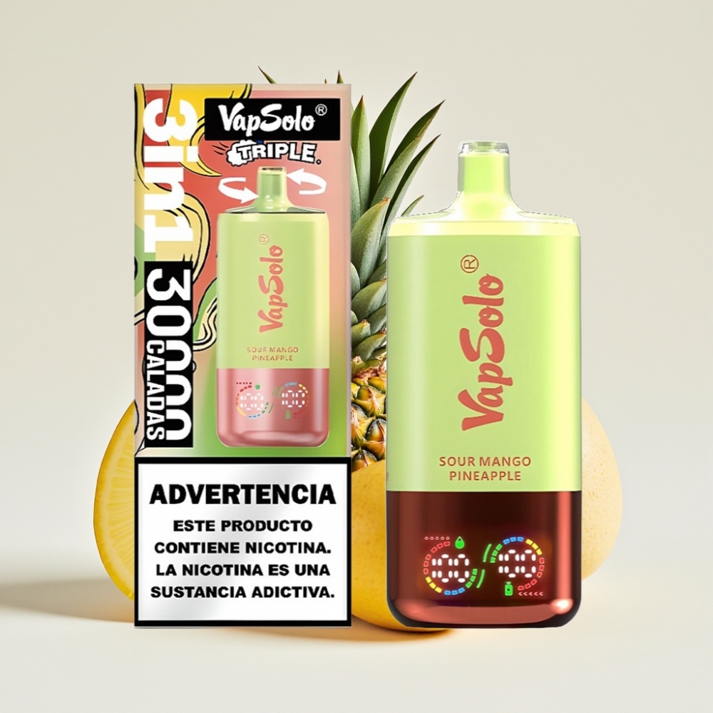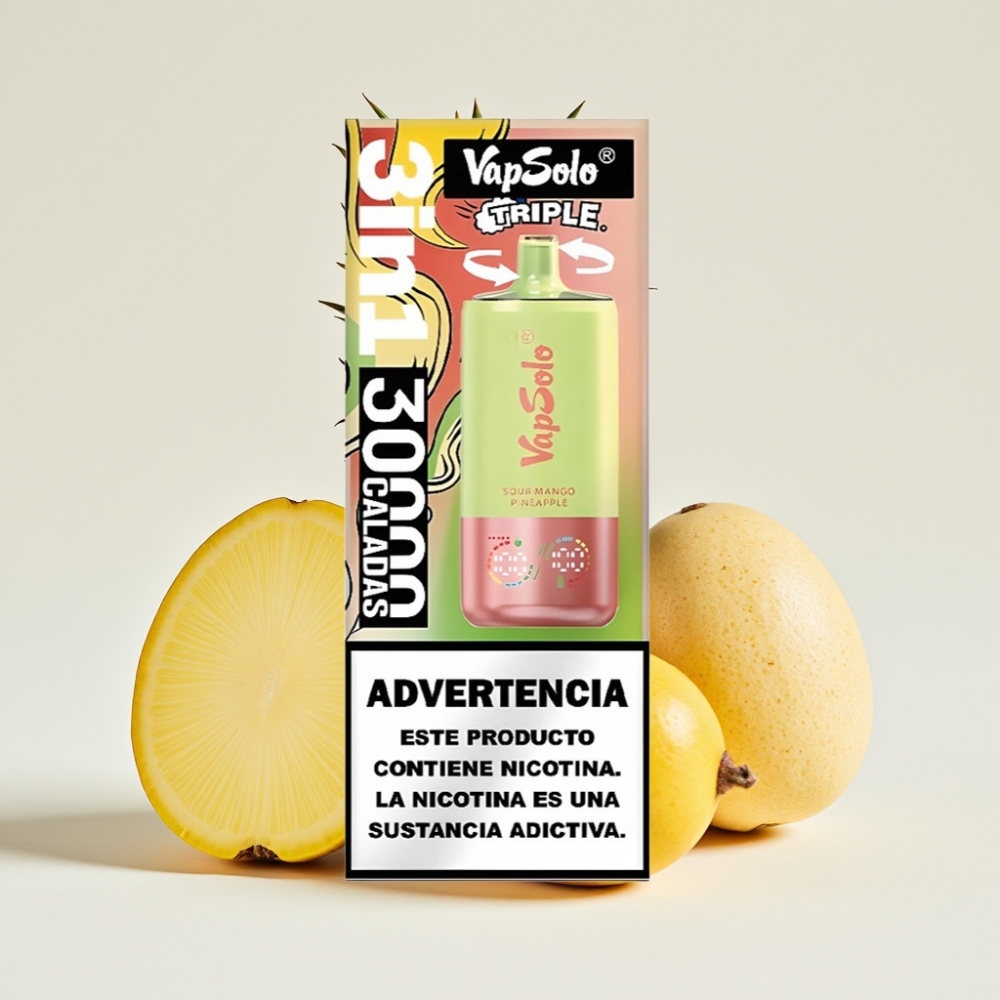 VapSolo Triple 30000 Puffs Mangue Ananas Acidulé – 40ml, 20/50mg/ml, Type-C
