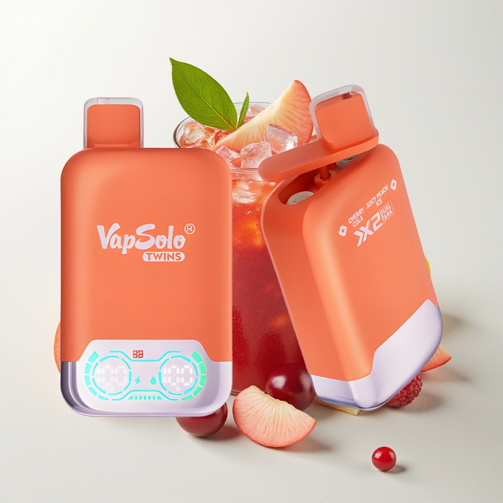 Vapsolo Twins 20000 Puffs E-Liquide 40ml Nicotine 20mg/ml/50mg/ml Saveur Cola Cerise & Pêche Glacée Juteuse